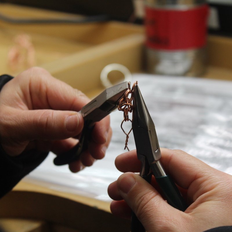 You will learn to manipulate wire through the selected use of hand tools, making jump rings, splicing wires together, and fusing jump rings shut to make woven and Etruscan chains.