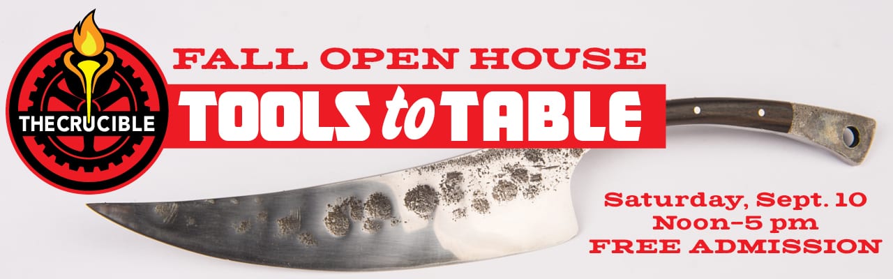Celebrate and explore the tools and techniques of creating and consuming food and drink! Tools to Table will feature over a dozen areas of interest: featured food and spirit vendors, creative collaborations, and onstage demonstrations. Guests will catch amazing fiery performances, see exciting demos in our studios, and explore our student and faculty art show displaying the creativity of The Crucible artist community as it relates to tools and utensils.