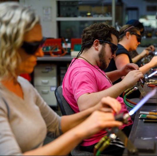 *Select workshops include Glassblowing, Glass Fusing, Hot Glass Sculpting, Glass Sandblasting, Blacksmithing, Ceramics (wheel throwing), and Glass Flameworking.
