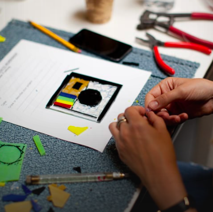 Learn to cut and shape sheet glass, then fuse the pieces together into a colorful mosaic tile of your design. Our Glass Fusing & Slumping Department teaches you to combine colors, paint on glass, and incorporate recycled materials to create beautiful projects.