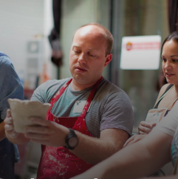 Work with clay in our Ceramics Department. In this workshop, each team member will hand build a ceramic mug, then add texture and glaze to make your piece pop. *Pieces will be ready for pick up two weeks after your workshop.