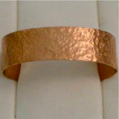 Using a six-inch by two-inch piece of copper, you will learn to anneal, hammer texture, stamp, and roll out texture. After the desired texture is achieved, you will shape your cuff and add finishing decorative touches.