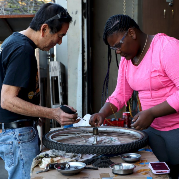 Classes in our Bike Shop help keep your ride on the road—whether it’s a motorcycle or a pedal bike you use for everyday transportation, an art bike or car you are inspired to create, or a customized hot rod. If it has wheels, you can learn from the pros how to trick it out and keep it running in top condition!