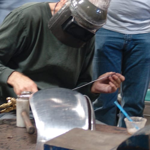 Gain invaluable skills for fabricating parts for motorcycles, cars, airplanes, and sculptures. Learn how to form sheet metal into tanks, fenders, and fairings, using gas-aluminum welding, a planishing hammer, an English wheel, and hand forming tools. Class time is split between instruction and lab time where students can use Crucible equipment. You will have a chance to make your own project.