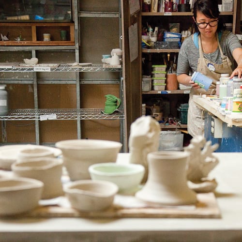 The Crucible offers a wide variety of adult ceramics classes. Whether you want to learn the fundamentals of sculpting or how to create wheel-thrown pots, The Crucible has you covered. See the complete list of pottery and ceramics classes offered below.