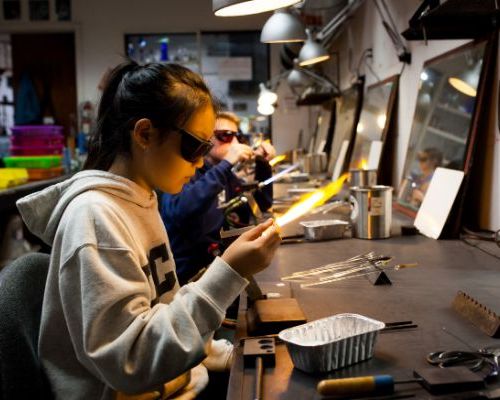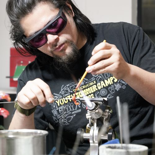 In the Glass Flameworking Department, we offer youth classes specifically for ages 12-18. In these classes, The Crucible provides a unique setting for youth to get hands-on with glass, exploring their creative voices and absorbing real-life lessons in science, technology, engineering, and math. You can see all The Crucible’s offerings for youth here.