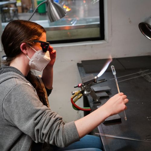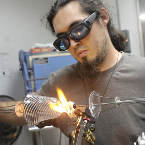 In this intermediate course, we expand on the fundamentals and investigate the intricacies of borosilicate glass flameworking in more involved projects and contemporary designs. In addition to learning more progressive solid glass techniques, you will learn to use glass tubing to make blown glass perfume bottles and vessels. Color application to blown glass and annealing hollow form pieces will also be discussed.