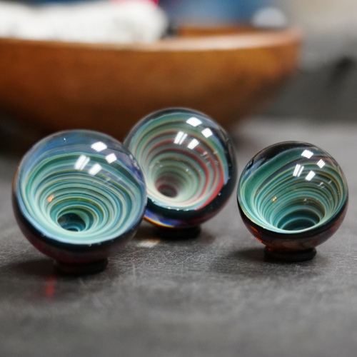 The magical world of glass marble making continues in this course for the enthusiast. Explore advanced techniques, such as color, depth, texture, organic detail, murrine and cane use, and surface decoration. Students create vortex marbles, implosion marbles, and mystical dichroic galaxy marbles.