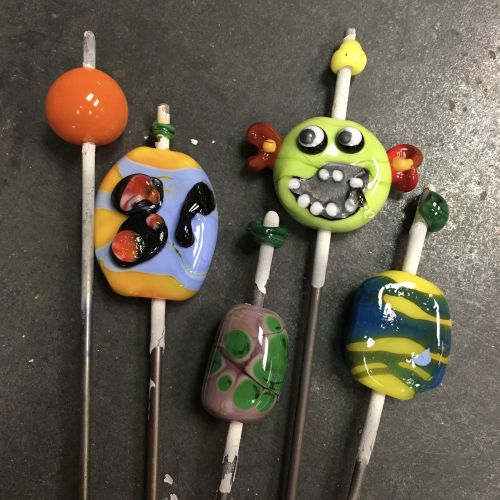 Students will be taken on a journey to explore colorful glass beads, bugs, and monsters with crazy eyes and wacky facial expressions, using an oxy-propane torch. We will cover bead surface patterns, shaping and forming glass, and will also take a brief historical look at monsters to inspire your very own projects.