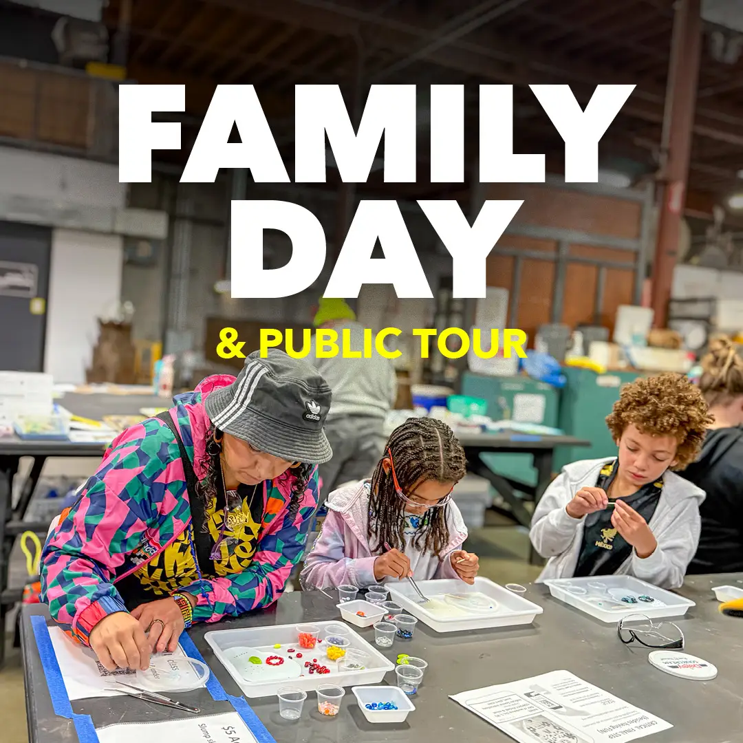 Free family day at The Crucible—tour our space, try hands-on art, meet students, and explore camps, classes, and creative fun for all ages!