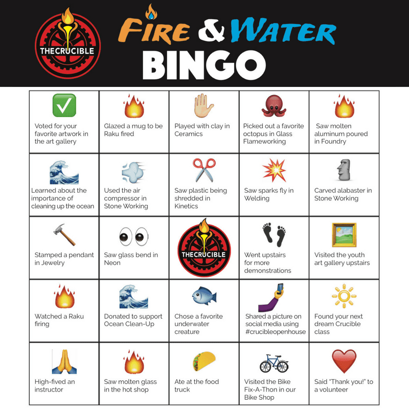 Learn more about the different disciplines you can explore at The Crucible by watching Crucible experts demonstrate their craft and celebrate aquatic life and water in 19 departments, including Glass Blowing, Blacksmithing, Foundry, Ceramics, and more!