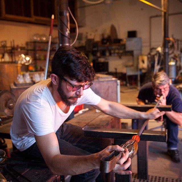 Sam is the founder of Rocket Glass Works, a handblown glassware company focused on creating unique, modern designs derived from organic, naturally inspired forms. Sam has been on faculty with The Crucible in the Glass Blowing Department since 2015.