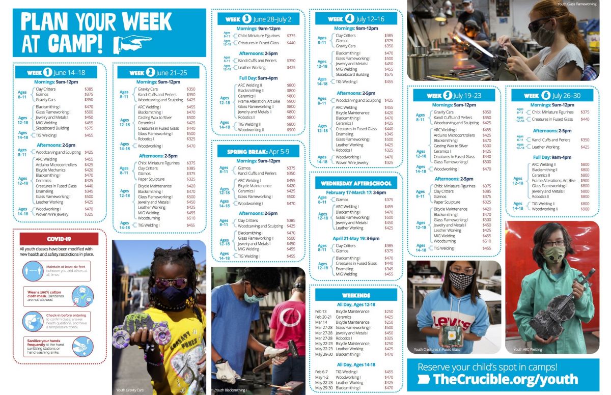 Weeklong adult classes return this August in departments like Jewelry, Blacksmithing, Woodworking, and more.