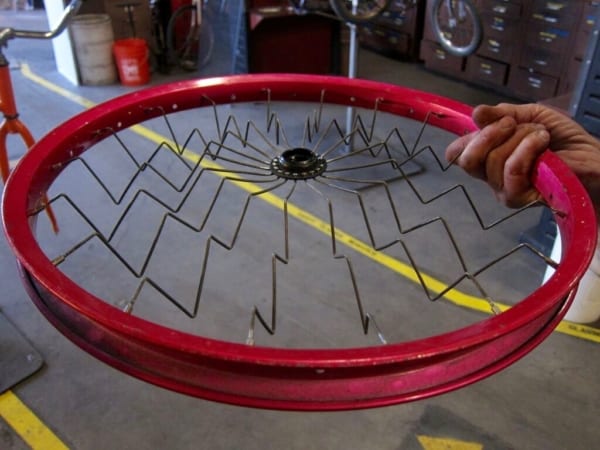 Marc’s personal project is building art wheels, which he makes by adjusting the spokes to create optical illusions.