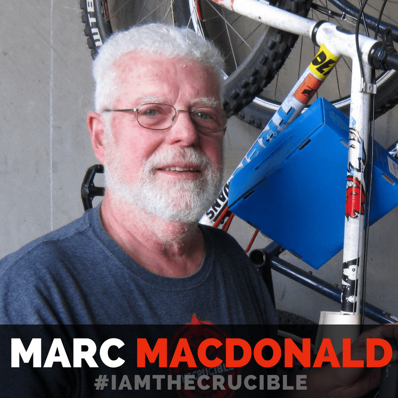 Marc Macdonald has always been a fixer of the vehicles that keep us moving, from boats to cars to bikes. After retiring from the Coast Guard, Marc came to The Crucible to volunteer in our Bike Shop in 2014. It is in our Bike Shop that Marc has found a place to keep himself sharp, organizing the puzzles of bike parts and managing the constant incoming flow of donated bikes.