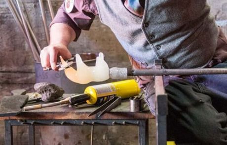 Explore the sculptural aspects of molten glass. We will focus on color application, bit work, hot torch, and garage use. Students gain an understanding of the technical vocabulary...