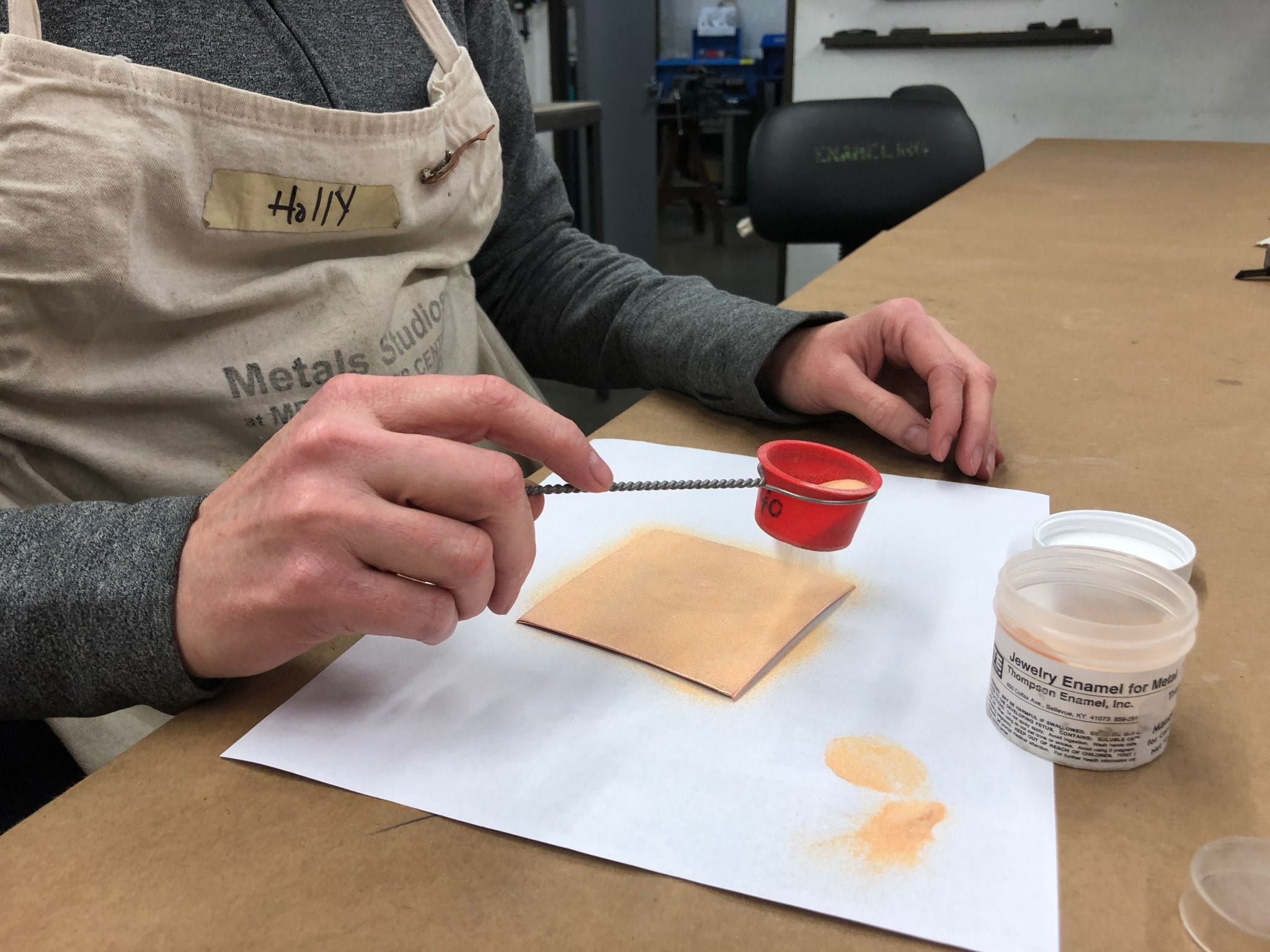 We met up with Jewelry and Enameling instructor Holly Carter to create an embossed enamel tile, one of the first projects students create in Enameling I.