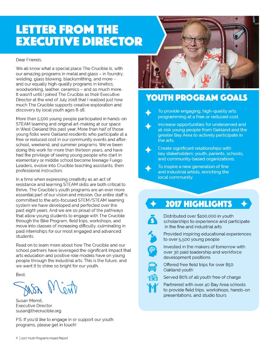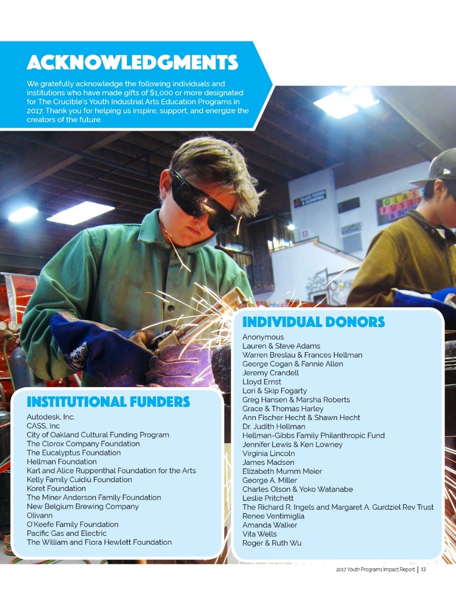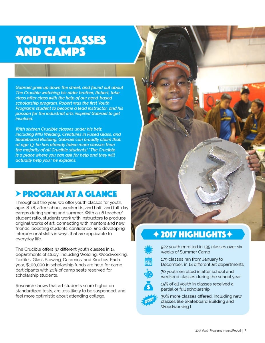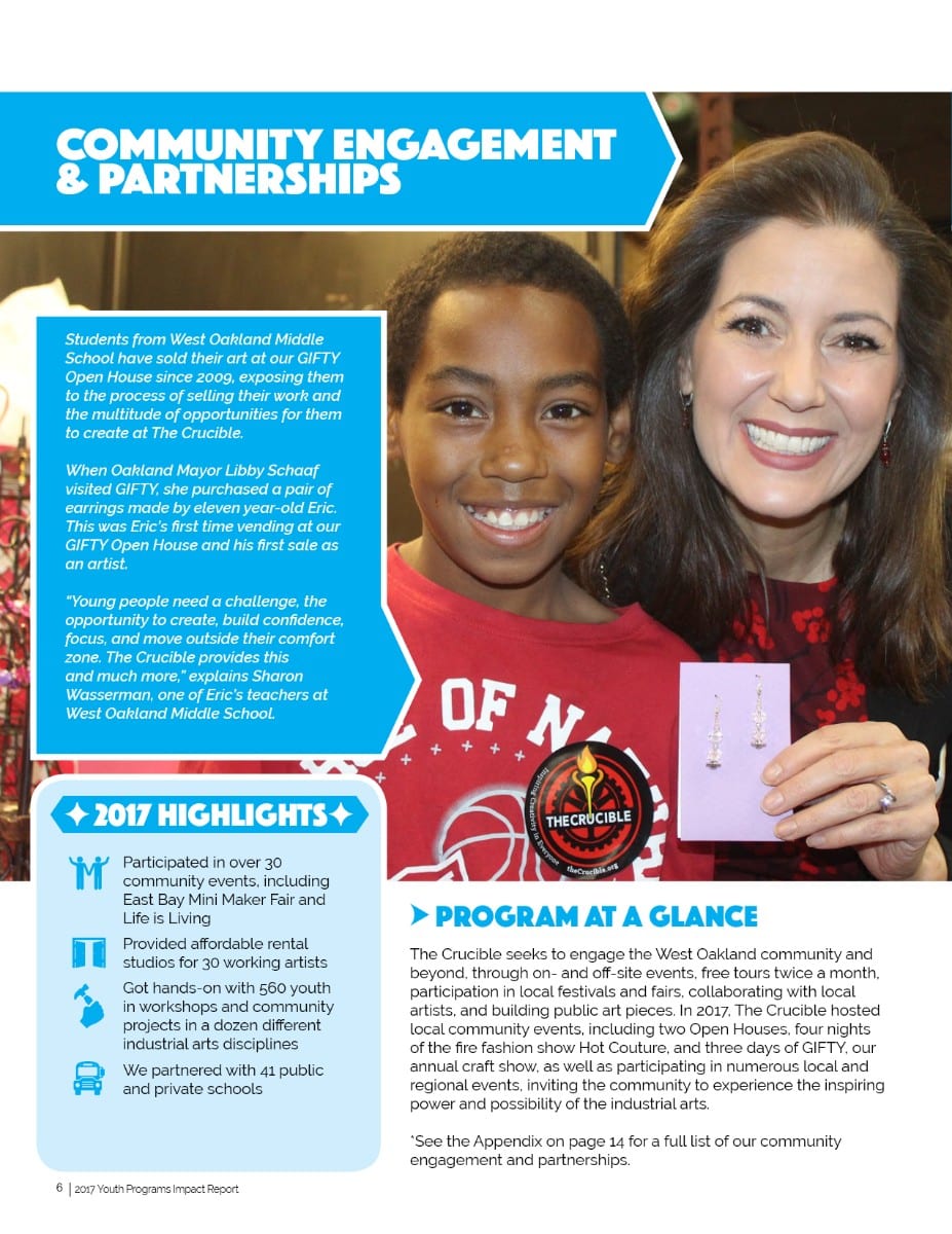 Read on to learn more about how The Crucible and our school partners have leveraged the significant impact that arts education and positive role models have on young people through the industrial arts. This is the future, and we want it to shine so bright for our youth.