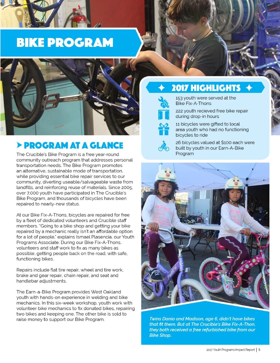 In a time when expressing creativity as an act of resistance and learning STEAM skills are both critical to thrive, The Crucible’s youth programs are an ever more essential part of our vision and mission. Our entire staff is committed to the arts-focused STEM/STEAM learning system we have developed and perfected over the past eight years. And we are so proud of the pathways that allow young students to engage with The Crucible through the Bike Program, field trips, workshops, and move into classes of increasing difficulty, culminating in paid internships for our most engaged and advanced students.